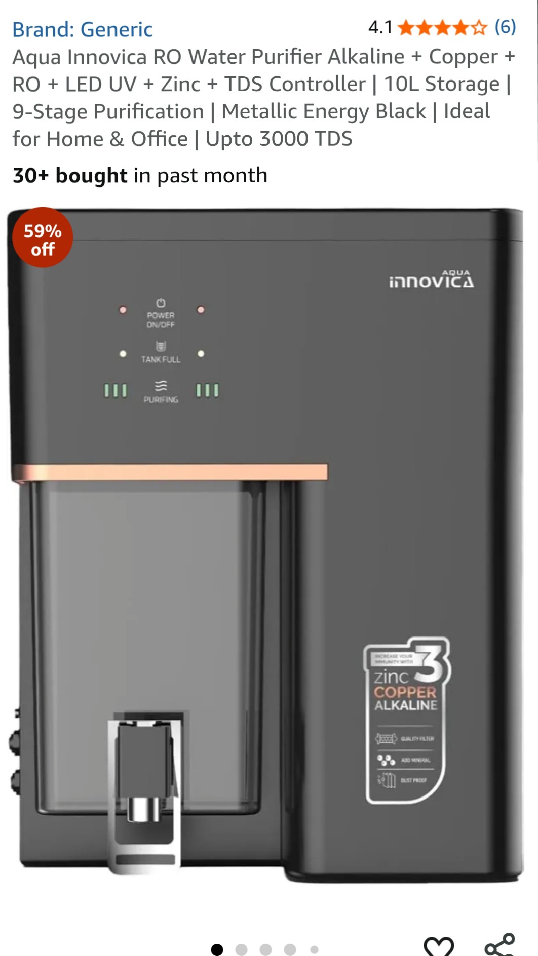 Inovica water purifier ro uv uf copper technolgy, 10 ltr storage with smart indicater