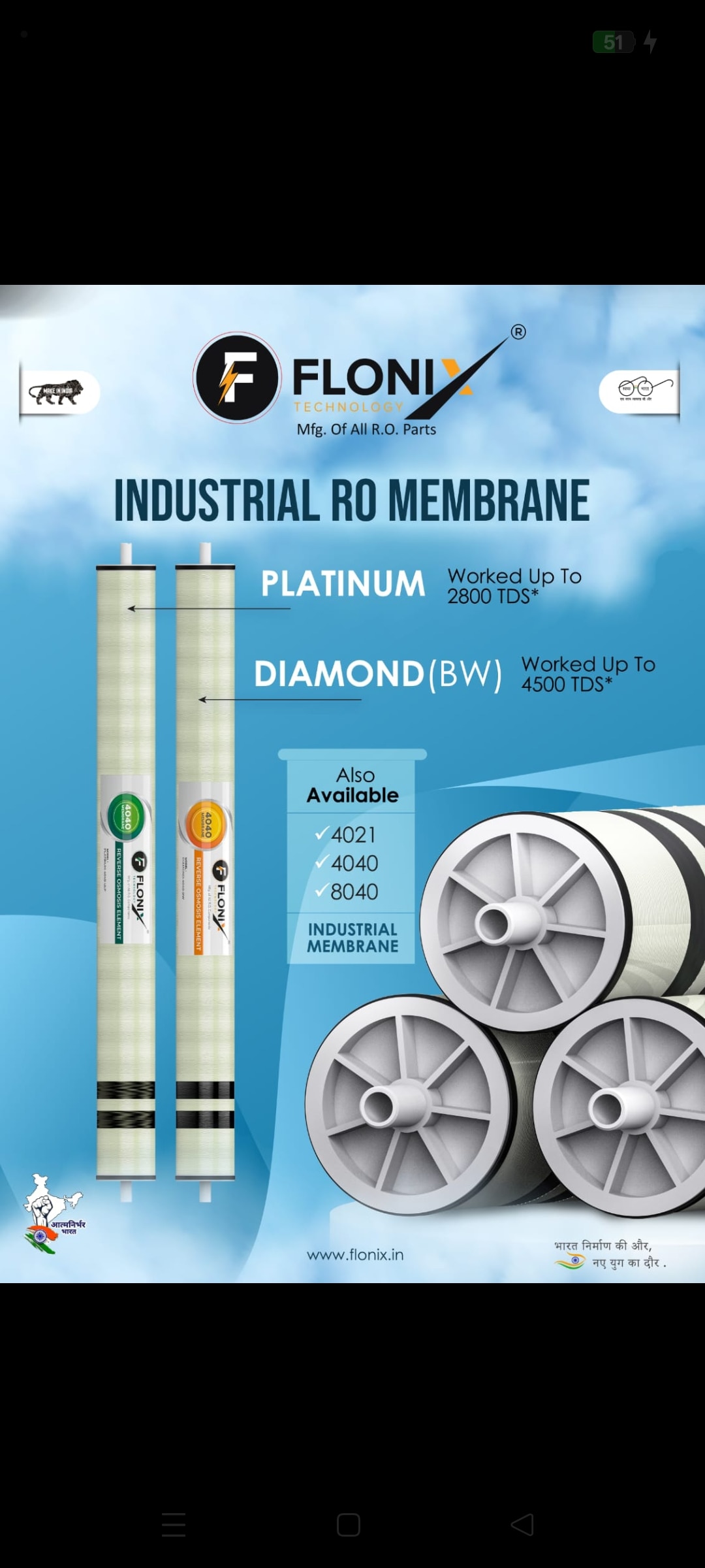 40/40 membrain for commercial plant. for 500 and 1000 ltr ro. 2000 to 4000 tds work